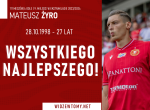 Swoje święto obchodzi dziś Mateusz Żyro. Obrońcy Widzewa, który kończy 27 lat, życzymy zdrowia, samych sukcesów w czerwono-biało-czerwonych barwach oraz zwycięstw jego drużyny w spotkaniach Zagłębiem Lubin i Legią Warszawa!