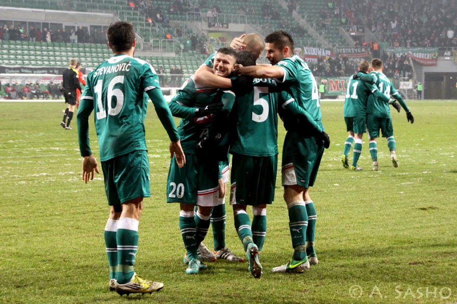 W drugim sobotnim pojedynku Mistrz Polski, Śląsk Wrocław podejmował Górnik Zabrze. Mecz czwartej drużyny z trzecią był także bezpośrednią walką o miejsce premiowane grą w europejskich pucharach. Spotkanie we Wrocławiu lepiej rozpoczęli goście, którzy wyszli na prowadzenie po golu Prejuca Nakoulmy w 37 minucie. Po przerwie zobaczyliśmy jednak zupełnie inny obraz, jak gdyby piłkarze obu zespołów zamienili się koszulkami. Na efekty długo nie trzeba było czekać. W 57 minucie na 1:1 wyrównał kapitan WKS-u Sebastian Mila, a starania o drugiego gola opłaciły się tuż przed końcem meczu. Piotr Ćwielong zadał Górnikom decydujący cios bramką w 88 minucie.
