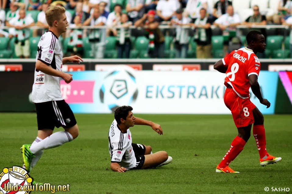 Widzew rozpoczął ten mecz i cały sezon Ekstraklasy najgorzej jak było można. W 3 minucie po pierwszym błędzie fatalnie dziś grającej widzewskiej obrony Miroslav Radović otworzył wynik meczu. Dalsza część I połowy była wyrównana. Najbliższy strzelenia wyrównującej bramki był w 33 minucie Bartłomiej Pawłowski, który ładnie uciekł obrońcy, ale Dusan Kucjak sparował piłkę na rzut rożny. W 39 minucie błąd popełnił najpierw Jakub Bartkowski, który dopuścił do dośrodkowania, potem wybicie piłki przez obrońcę okazało się zbyt krótkie i mimo asysty Dawida Kwieka Jakub Rzeźniczak podwyższył wynik na 2:0.