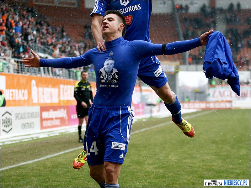 Dziewiąte miejsce okupuje obecnie Zagłębie Lubin, które dziś podejmowało czternasty Ruch. Niebiescy dwukrotnie zmuszeni byli odrabiać straty, po dwóch bramkach Adriana Błąda. Do siatki Miedziowych strzelali Dorde Cotra (gol samobójczy) oraz Łukasz Janoszka. Kiedy wydawało się, że mecz zakończy się podziałem punktów, w ostatniej akcji chorzowianie przechylili szalę na swoją stronę za sprawą Jakuba Smektały, który na raty pokonał Michała Gliwę. Piłkarze Ruchu szczęśliwą wygraną zadedykowali zmarłemu przed kilkoma dniami Jerzemu Wyrobkowi. Jak widać legenda Niebieskich z góry czuwała nad losami spotkania.