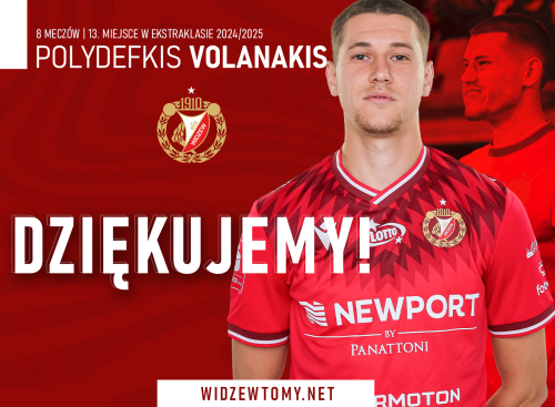 Rozmowy z Polydefkisem Volanakism na temat rozwiązania umowy trwały od dłuższego czasu, o czym informowaliśmy już na WTM. Udało się je zakończyć teraz, co oznacza pożegnanie z piłkarzem. Wcześniej rozstano się także z Kamilem Andrzejkiewiczem i Markiem Hanouskiem, siedmiu zawodników trafiło na wypożyczenia do innych zespołów, a jeden wrócił na stałe do rezerw.
