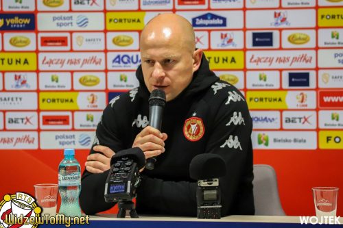 „Zacznę od gratulacji dla Podbeskidzia z okazji zwycięstwa. My jesteśmy bardzo rozczarowani tym, co się wydarzyło, zwłaszcza w drugiej połowie, bo w pierwszej wydawało się, że wszystko mamy pod kontrolą. Mieliśmy niezłe fragmenty w naszej grze, a tymczasem wyszliśmy po przerwie i straciliśmy dwie bramki. Ciągle traciliśmy piłkę, czym tylko nakręcaliśmy przeciwników. Później przyszła czerwona kartka Patryka Stępińskiego, a my jako sztab stanęliśmy przed wyborem: albo czekamy na własnej połowie, bronimy się i liczymy na najniższy wymiar kary, albo wychodzimy odważnie, szukamy pressingu, co może nas narazić na kontrataki. Ja jako trener chciałem uniknąć tego pierwszego rozwiązania. Wolałem zaryzykować, pójść wyżej, żeby strzelić na 1:2 i spróbować odwrócić ten mecz. Szereg błędów spowodował jednak, że zakończyło się to najwyższą porażką, odkąd jestem w Widzewie.”
