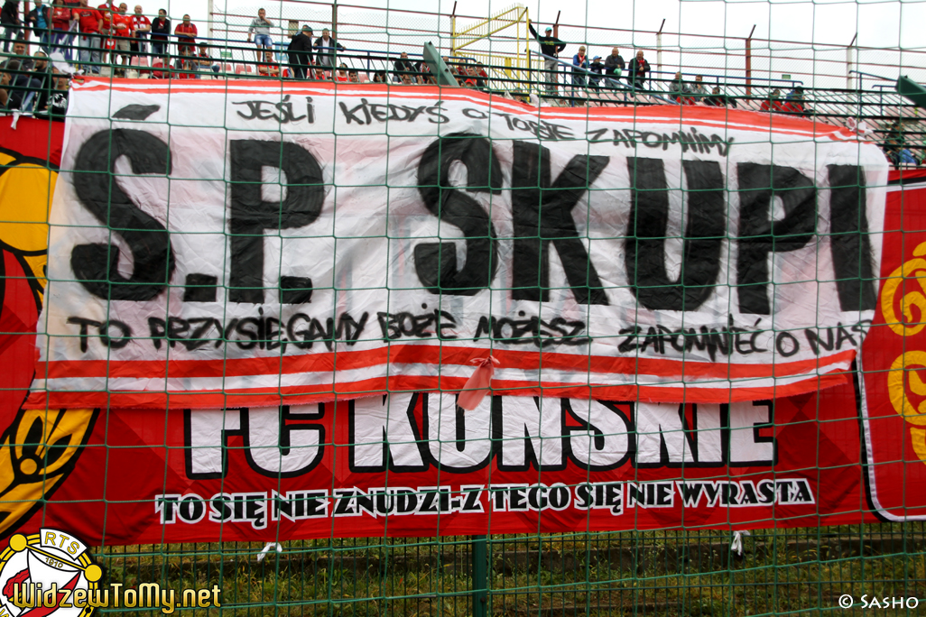 * Na meczu zabrakło kibiców Widzewa ze świętokrzyskich fan clubów. Fani ci udali się bowiem do Końskich na pogrzeb zmarłego nagle 18-letniego fanatyka RTS z tego miasta – ŚP. „Skupiego”