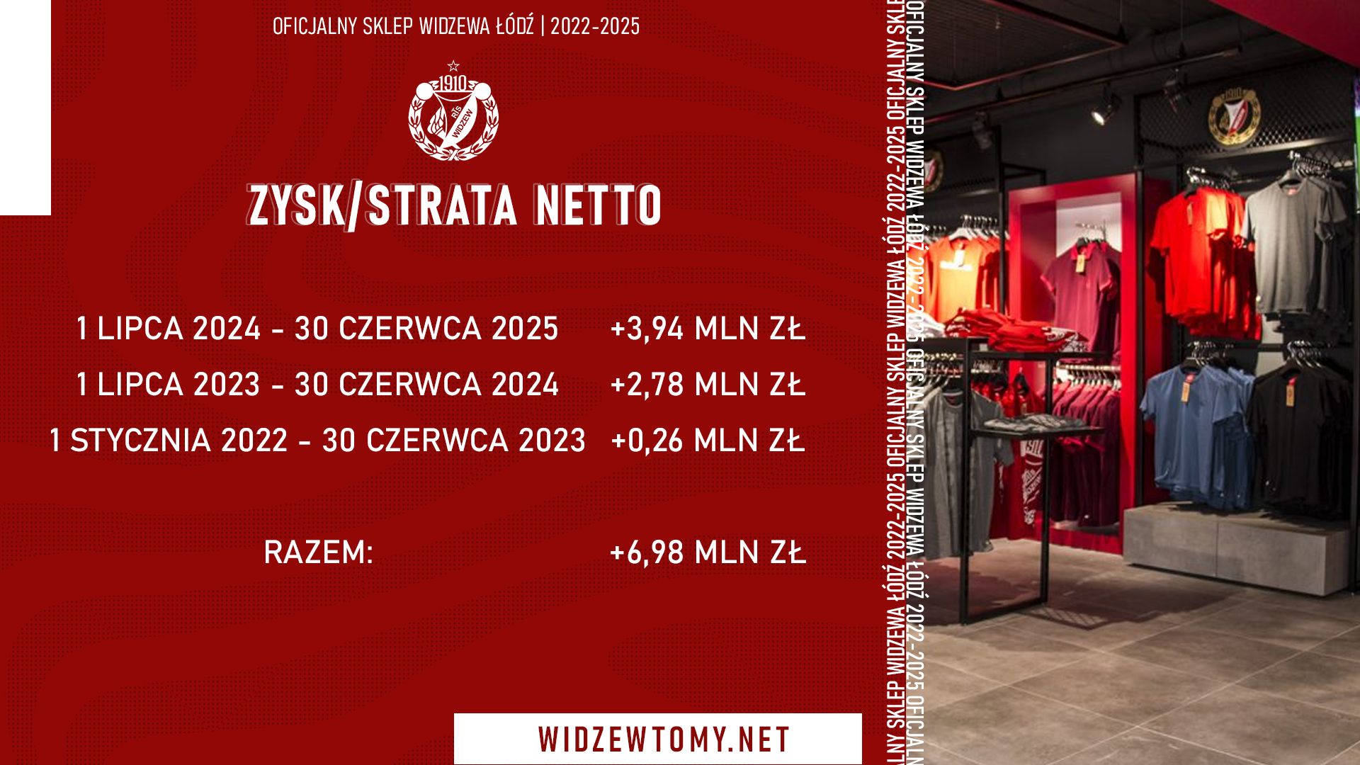 17 stycznia 2026, 19:04 | Autor: RyanW ostatnim czasie w temacie sklepów oficjalnych Widzewa mówi się głównie w kontekście zniszczeń, do jakich doszło w placówce w Galerii Łódzkiej. Dla przeciwwagi, warto spojrzeć na dane finansowe, dotyczące kwestii sprzedaży pamiątek. A jest na co!