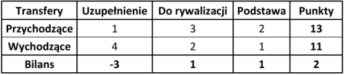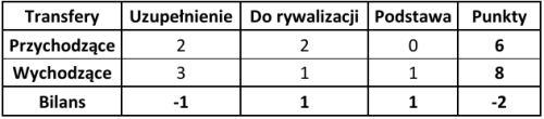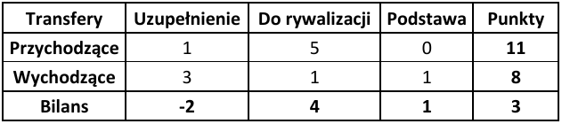 Najgorszy wynik bilansowy odnotowały dwie drużyny: Lechia Gdańsk i Zagłębie Lubin (po -4 punkty). Można odnieść wrażenie, że w przypadku Lechii problemem nadal pozostają obawy nowych zawodników związane z terminowością wypłat – kwestia ta była już w przeszłości powodem sankcji wobec gdańskiego klubu. Jeśli chodzi o Zagłębie, obecne działania wpisują się w zapowiadaną, bardziej zachowawczą politykę transferową, którą klub zamierza kontynuować w najbliższym czasie.