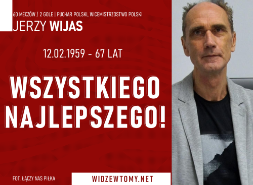 12 lutego 2026, 08:34 | Autor: RyanSwoje 67. urodziny obchodzi dziś były piłkarz Widzewa Łódź, Jerzy Wijas. Z tej okazji składamy mu życzenia zdrowia, codziennego uśmiechu i spełnienia wszystkich najskrytszych marzeń!
