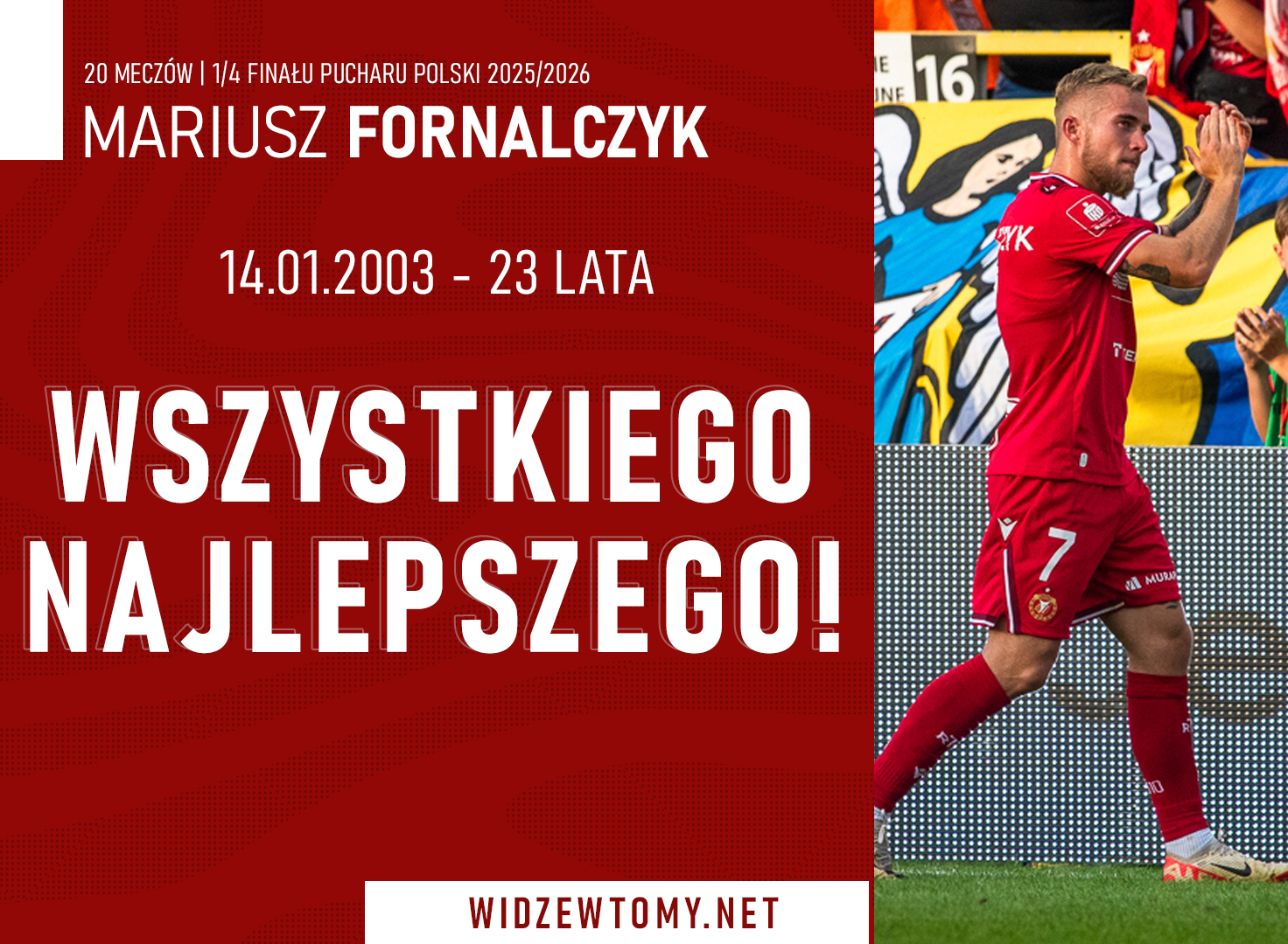 15 stycznia 2026, 08:32 | Autor: RyanDzisiejszy dzień w Belek będzie jednym z bardziej wyjątkowych na trwającym obozie, przynajmniej dla Mariusza Fornalczyka. Pomocnik Widzewa Łódź obchodzi dziś bowiem swoje 23. urodziny i z tej okazji życzymy mu dużo zdrowia i piłkarskich sukcesów!