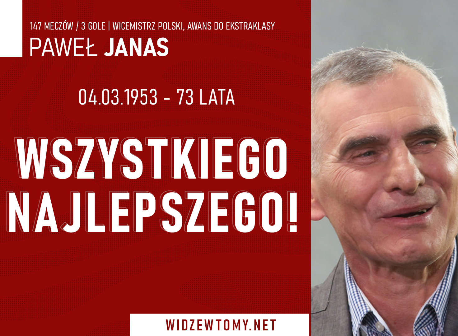 4 marca 2026, 12:20 | Autor: RyanUrodziny obchodzi dziś Paweł Janas, były piłkarz oraz trener Widzewa Łódź. Kończącemu 73 lata solenizantowi pragniemy złożyć im życzenia zdrowia, wszelkiej pomyślności oraz spełnienia najskrytszych marzeń!