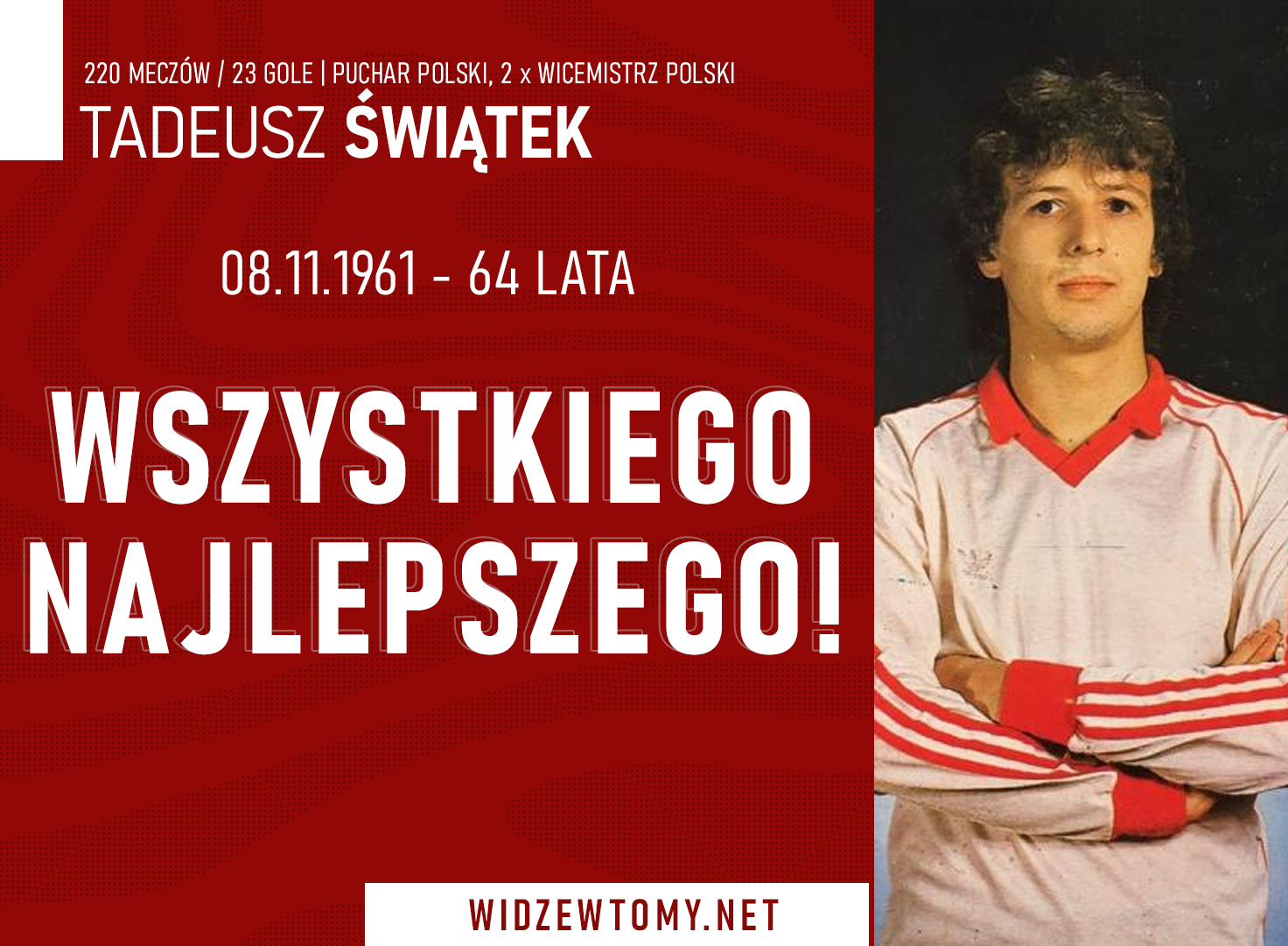 8 listopada 2025, 19:51 | Autor: Ryan64 lata kończy dziś Tadeusz Świątek, przez wiele lat związany z łódzkim Widzewem. Z tej okazji życzymy byłemu pomocnikowi zdrowia, wszelkiej pomyślności oraz wielu powodów do codziennego uśmiechu.