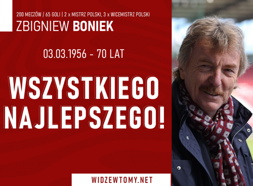 70 lat kończy dziś Zbigniew Boniek, jedna z największych piłkarskich legend Widzewa, a także były właściciel klubu. Z tej okazji składamy życzenia zdrowia, wszelkiej pomyślności w życiu zawodowym oraz prywatnym!