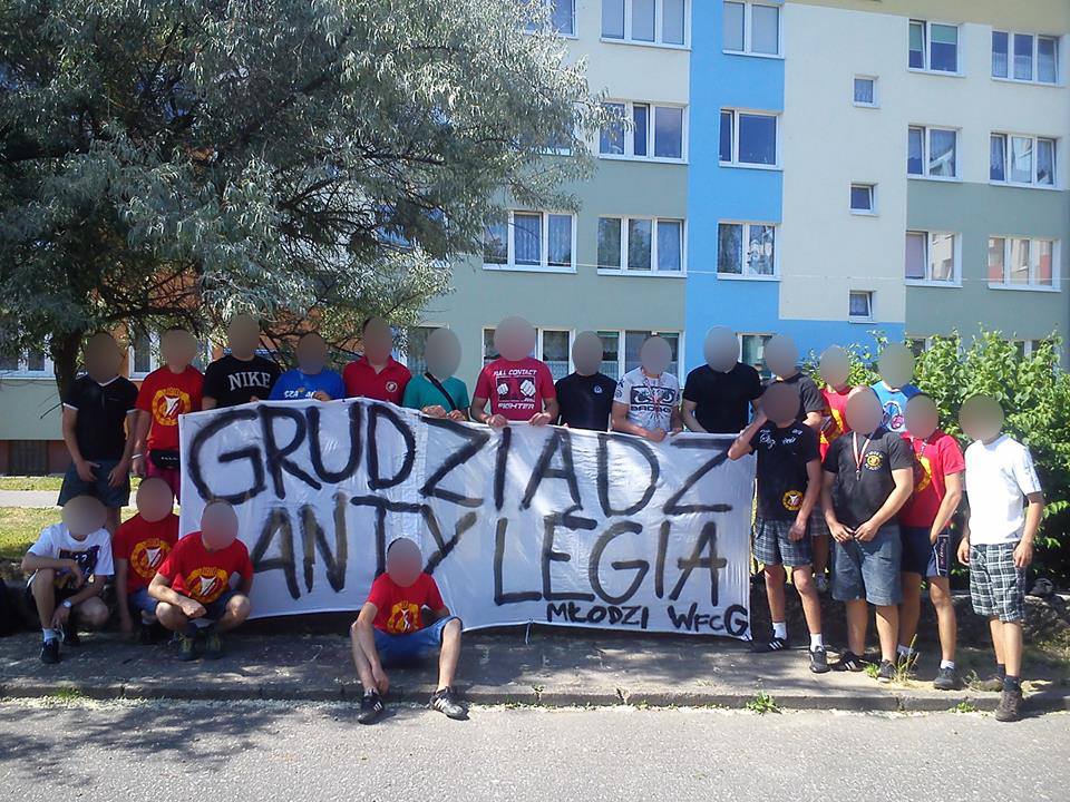 Na płocie pojawił się także transparent o treści „Grudziądz – Anty Legia”.