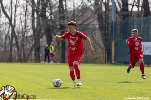Drugi kwadrans nie był tak ciekawy, choć z uśmiechami na twarzach kończyli go goście, którzy w ostatnich minutach wyglądali lepiej od Łodzian. W 28. minucie z prawej strony w pole karne wpadł Jakub Domański, który położył na ziemi Daniela Tanżynę i mocnym strzałem po krótkim słupku pokonał Kikolskiego. Szybko chcieli odgryźć się Widzewiacy, którzy wyszli z kontrą czterech na dwóch. Piłkę ze środka otrzymał Daniel Gryzio. Skrzydłowy próbował złamać do prawej nogi, ale antycypował to defensor gości i akcja spaliła na panewce. Ta strata zapoczątkowała kontrę KS CK, którą strzałem z dystansu kończył Mikołaj Kłosiński. Na nasze szczęście uderzał obok bramki, choć arbiter dopatrzył się kontaktu z piłką Kikolskiego. Gościom jednak nie udało się zamienić rzutu rożnego na bramkę.